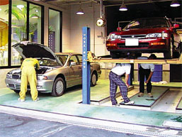 自社工場を完備しておりますので、車検修理・鈑金・塗装・ドレスアップ等、アフターサービスも万全です。最長5年間・10万km保証付。